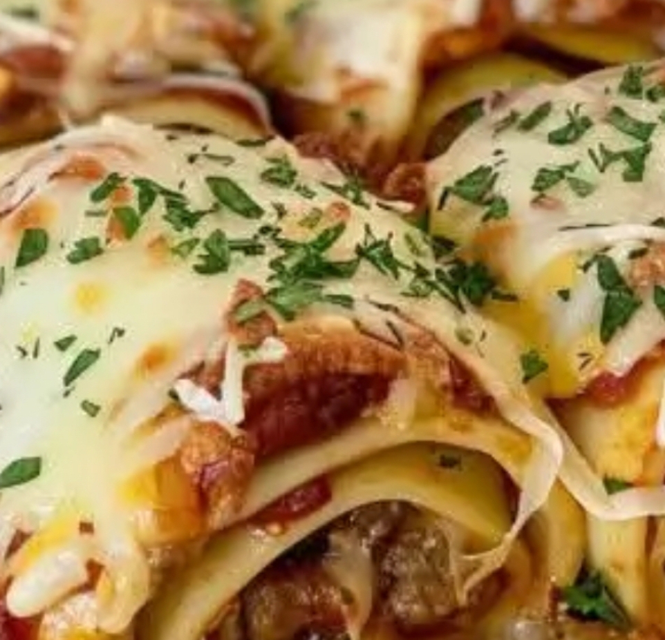Ingredients:12 lasagna noodles, cooked and drained1 lb Italian sausage, crumbled1 cup ricotta cheese1 cup mozzarella cheese, shredded1/2 cup Parmesan cheese, grated2 cups marinara sauce1 egg, beaten1 tsp garlic powder1 tsp onion powderSalt and pepper, to tasteFresh basil or parsley, for garnish (optional)Preparation:Cook the Sausage:In a skillet, cook the crumbled sausage over medium heat until browned and cooked through, about 5-7 minutes.Drain excess fat and set aside to cool slightly.Prepare the Cheese Filling:In a large bowl, combine the ricotta cheese, mozzarella, Parmesan, beaten egg, garlic powder, onion powder, and salt and pepper.Mix until smooth and well combined. Stir in the cooked sausage.Assemble the Roll-Ups:Preheat your oven to 375°F (190°C).Spread a thin layer of marinara sauce on the bottom of a 9×13-inch baking dish.Take a lasagna noodle and spread a generous amount of the cheese and sausage mixture over the noodle.Roll the noodle up tightly and place it seam-side down in the baking dish. Repeat with the remaining noodles.Top with Sauce and Cheese:Once all the roll-ups are in the dish, cover them with the remaining marinara sauce.Sprinkle any leftover mozzarella or Parmesan cheese over the top.Bake:Cover the baking dish with aluminum foil and bake for 25 minutes.Remove the foil and bake for an additional 10-15 minutes until the cheese is bubbly and golden.Serve and Enjoy:Let the lasagna roll-ups rest for 5 minutes before serving. Garnish with fresh basil or parsley, if desired.These 3-Cheese Sausage Lasagna Roll-Ups are a delightful and hearty meal that will quickly become a favorite in your household. Enjoy them for dinner, and don’t forget—they’re even better the next day!