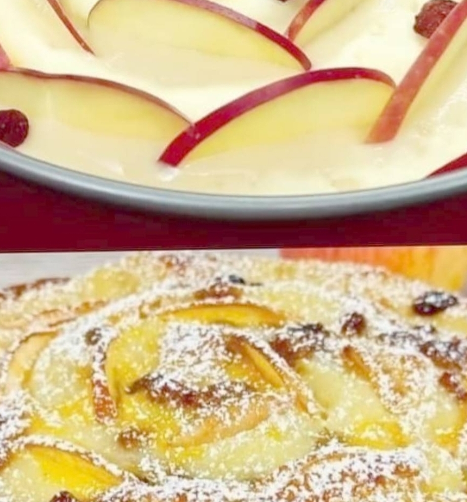 IngredientsIngredients To make the cream:1 eggA little bit of salt 8g (1 tsp) sugar with vanilla flavor 60g (4 tbsp) sugar 40 grams (4 tablespoons) cornstarch 250ml (1 cup) leche2 teaspoons of lemon juice30 grams, which is equivalent to 1.5 tablespoons. mantequillaCake Ingredients:2 apples, one chopped into small pieces and the other sliced thinly.1 spoon of sugar 2 eggsA small amount of salt 8g (1 tsp) sugar with vanilla flavor 120g (0.6 cup) sugar 100ml (1/2 cup) oil made from vegetables 130ml (1/2 cup) Milk heated up 280g (1.75 cups) flour 16 grams (2 teaspoons) a powder used for baking50 grams of raisins1 yellow part of an egg2 tablespoons of milkPowdered sugar to sprinkle on top (if desired)PreparationMake the Cream: In a pot, mix 1 egg, a little salt, 8g vanilla sugar, and 60g sugar.Add 40 grams of cornstarch and 250 milliliters of milk. Stir until there are no lumps.Put the pot on medium heat and cook, stirring all the time, until the mixture becomes thick.Take the mixture off the heat and mix in 2 teaspoons of lemon juice and 30 grams of butter until everything is well mixed.Cover the surface directly with plastic wrap to avoid forming a skin. Allow it to cool down completely.Make the cake mixture.Heat your oven to 180℃ (356℉) before using it.Cover a 24cm baking pan with parchment paper.In a big bowl, whisk 2 eggs with a little salt.Add 8 grams of vanilla sugar and 120 grams of sugar, then mix until the mixture is light and fluffy.Slowly pour 100ml of vegetable oil and 130ml of warm milk into the mixture, stirring well each time.Add 280g of flour and 16g of baking powder to the mixture, then mix gently until smooth.Carefully mix in the diced apples and 50 grams of raisins.Make the cake: Pour half of the mixture into the pan that has been prepared for baking.Spread the cold cream evenly on top of the mixture.Pour the rest of the batter over the cream, making sure it covers the surface evenly.Place the thin apple slices on top of the mixture.Make the egg wash.In a little bowl, combine 1 egg yolk with 2 tablespoons of milk.Put the egg wash on the apple slices that are on the cake.Make the Cake: Put the cake in the oven that has been heated beforehand and bake for around 45 minutes, or until a toothpick inserted in the middle comes out clean.Allow the cake to cool in the pan for a bit, then move it to a wire rack to cool down completely.Serve: Add powdered sugar on top before serving, if you like.Cut and savor!Ideas for how to serve food.Enjoy with a spoonful of whipped cream or a scoop of vanilla ice cream.Have a cup of tea or coffee for a nice afternoon snack.Tips for CookingMake sure the cream is completely cold before putting it on the batter to avoid it melting into the cake.Change the level of sweetness by adding more or less sugar according to your taste.To make the taste stronger, you can put a teaspoon of cinnamon in the mixture.Benefits of NutritionApples are full of fiber and vitamin C.Ezoic Eggs are a good source of protein and important nutrients.Milk provides calcium and protein to keep your bones healthy.Information about food and nutrition.Vegetarian: This recipe is suitable for vegetarians.Gluten-Free Alternative: Use flour without gluten to make this recipe suitable for gluten-free diets.Dairy-Free Choice: Use non-dairy options instead of milk and butter.Tips for storing food Keep any extra food in a sealed container in the fridge for a maximum of 3 days.Enjoy !