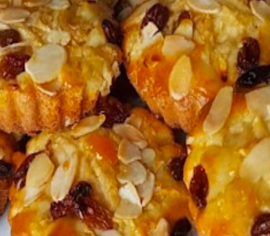 Time Spent PreparingTime Required: forty minutesDuration: fifteen minutesCook for twenty-five minutes.Items Needed for the Baking:a single eggSeventy gr of sugar8 grams of vanilla sugar a pinch of salteighty milliliters of milk and seventy milliliters of vegetable oil150 grams of flourbaking powder, 7 gramsRegarding the Topper:Minced, cored, and chopped apple, one1 teaspoon of lemon squeezeExtra raisins, if desiredSalted almonds (amount to taste)The ezoicsugar, measuring one teaspoonCinnamon, lightly groundHow to FollowGet the Mold Ready:Mix the flour and butter and use it to coat a muffin pan. For the most accurate results, choose a mold that is 24 or 26 centimeters in diameter.The ezoicGet the Batter Ready:Prepare a mixing bowl and whisk in the egg.After adding the sugar, salt, and vanilla sugar, stir until creamy.While whisking constantly, add the milk and vegetable oil in stages.Flour and baking powder should be mixed in a separate basin.While whisking constantly, slowly incorporate the flour mixture into the liquid components.Get the Topping Ready:After you peel, core, and cut the apple, set it aside. A little lemon juice may keep the apple slices from browning, so toss them with that.Toss in the chopped almonds and raisins.The ezoicMix the cinnamon and sugar together in a small bowl.Put the Muffins Together:Once the muffin shape is ready, pour in the batter.On top of the batter, evenly divide the almond, apple, and raisin combination.Finish by dusting the top with the sugar and cinnamon mixture.Preheat the oven to 180°C (350°F) before baking.After 20 to 25 minutes in the oven, or when a toothpick inserted in the middle comes out clean, the muffins are done baking.After a few minutes of cooling in the mold, remove the muffins and set them on a wire rack to finish cooling.Not required To make a glaze, spread apricot jam over the cooled muffin tops for an extra delicious touch.Suggested ServingsWarm or room temperature, these muffins are sure to please.As a tasty snack, they go well with hot beverages like coffee or tea.Sweeten it up with some vanilla ice cream or whipped cream for a decadent dessert.Advice about the KitchenTo achieve consistent baking, make sure the apples are diced equally.Keep the batter light and airy by without mixing it too much.Apples that are ripe and fresh will impart the most taste.Health AdvantagesApples are a great source of antioxidants, vitamins, and fiber.Raisins: They are naturally delicious and a great way to get your iron.Nuts and protein abound in almonds, which also provide a satisfying crunch.×Information Regarding the Ezoic DietPaleo diet: Vegetarians may enjoy this dish.For a Dairy-Free Option, Try Almond or Oat Milk Instead of Regular Milk.Advice on StoragePut leftovers in the fridge: They’ll keep for up to three days in an airtight container. Before serving, reheat in the oven or microwave.Put in the freezer: These muffins can keep for up to a month if frozen. Rethaw in the oven or let it thaw at room temperature.What Makes This Recipe So DeliciousHealthy and Tasty: Brings together the wholesome crunch of almonds with the naturally sweet flavor of fruits.Simple ingredients and easy-to-follow instructions make this dish perfect for any occasion.× ÏApt for Any Event: Great as a sweet treat, a snack, or even for breakfast.In summaryYou need to add these Apple, Raisin, and Almond Muffins to your baking repertoire. Their wonderful topping and light, airy texture guarantee that they will be devoured by everybody. Get in the kitchen and make these tasty muffins for your loved ones.
