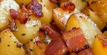 Crispy, Juicy Oven Fried Potatoes & Onions with Bacon Delight