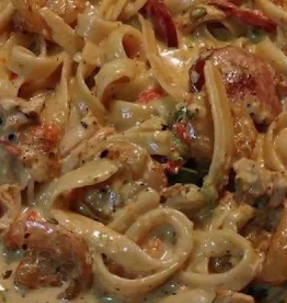 - Return the cooked pasta, shrimp, and sausage to the pot. Toss everything together in the creamy Cajun sauce until fully coated. Let the mixture simmer for an additional 2–3 minutes to meld flavors.