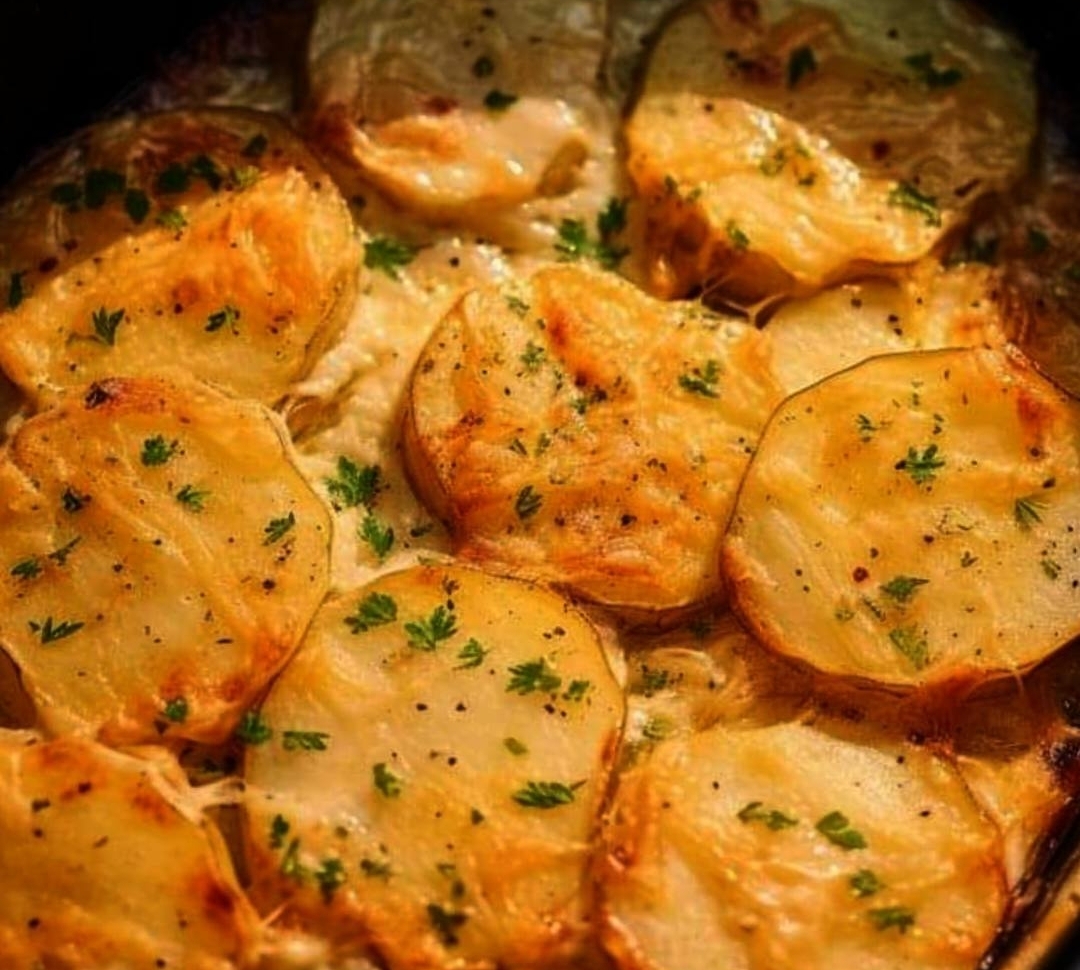 In a bowl, whisk together heavy cream, milk, flour, salt, pepper, garlic powder, and onion powder until the mixture is smooth. This blend forms the savory sauce that will envelop the potatoes.