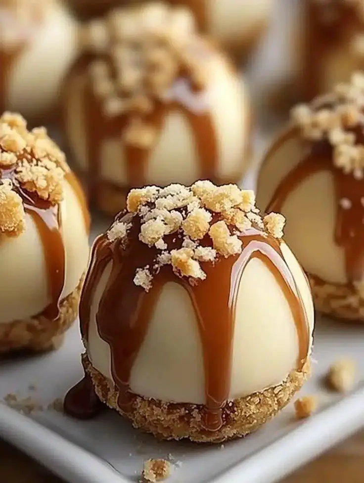Dip each cheesecake ball into melted white chocolate, letting excess drip off.