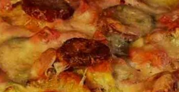 4 chicken eggs200 g sour creamA bunch of spring onions1 tomato500 g potatoes2 hunting sausages50 g hard Parmesan cheeseSalt to…