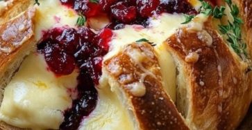 Ingredients:– 1 large round sourdough bread loaf– 1 cup fresh cranberry sauce (store-bought or homemade)– 8 oz Brie cheese, cut…