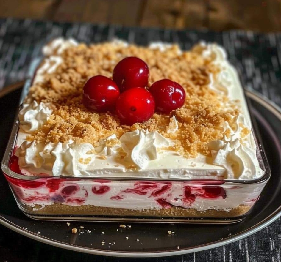 Ingredients1-14 ounce package of golden oreos, crushed in processor⅓ cup butter, salted and melted1 tbsp for preparing the pan8 ounces cream cheese, softened to room temp¾ cup white sugar16 ounces frozen whipped topping, thawed2 small boxes of Cheesecake flavored instant pudding mix3 cups whole milk2 large cans of cherry pie filling1 cup chopped pecans or chopped walnutsHow To Make Cherry Cheesecake LushButter the inside of a 9×13 baking dish and set to the sideCrush the cookies until small crumbs formAdd the melted butter and pulse until combinedPlace the cookie mix into the bottom of the baking dish, press down and make the layer as even as possiblePlace the crust into the freezer for 10 minutes while you make the filling.In a bowl beat together the cream cheese, sugar, vanilla and 1 cup of the whipped topping.Mix until smoothSpread this mixture over the cookie crust and place back into the freezer for another 10 minutesIn another bowl combine the 2 packages of pudding mix, the milk and ½ cup of whipped topping mix. Using a whisk, whisk until it begins to thickenSpread the pudding over the chilled cream cheese layer, smooth evenly and chill for 30 minutes or until the pudding is setAfter 30 minutes, pour the Cherry pie filling over the pudding layer very carefully so as to not mix layers togetherCarefully spread the remaining whipped topping over the entire dessertTop with chopped pecans and chill for 1 to 2 hours before serving.Enjoy!