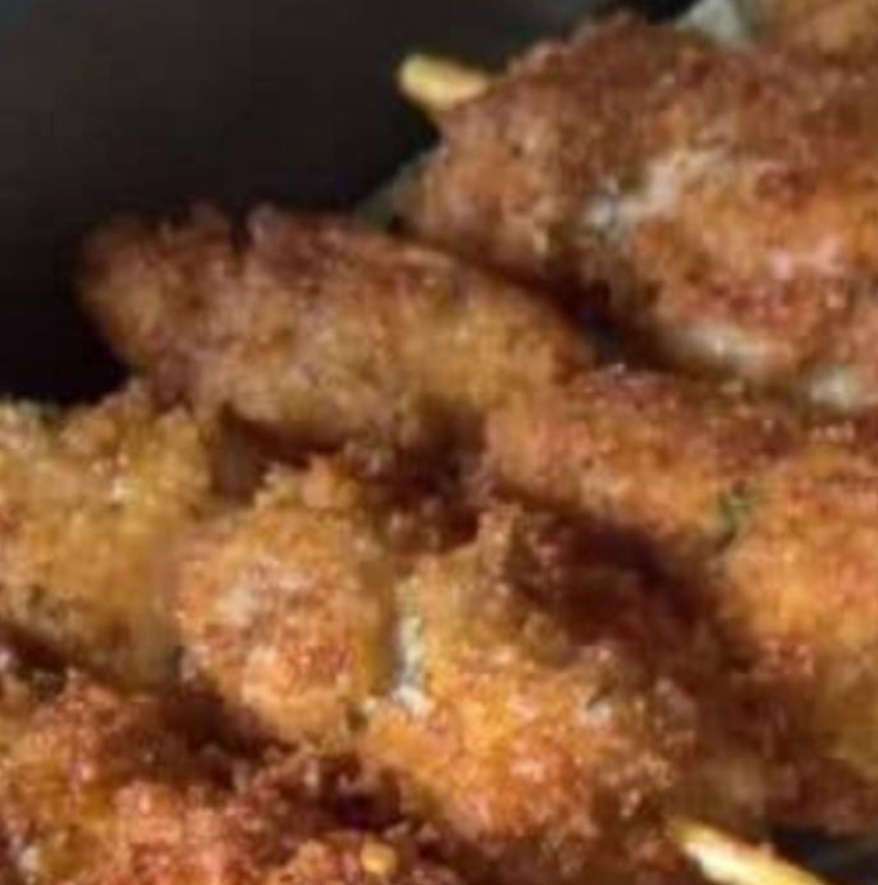 Once well-coated, fry each skewer until it sports a gorgeous golden-brown shade, typically taking 3 minutes on each side.