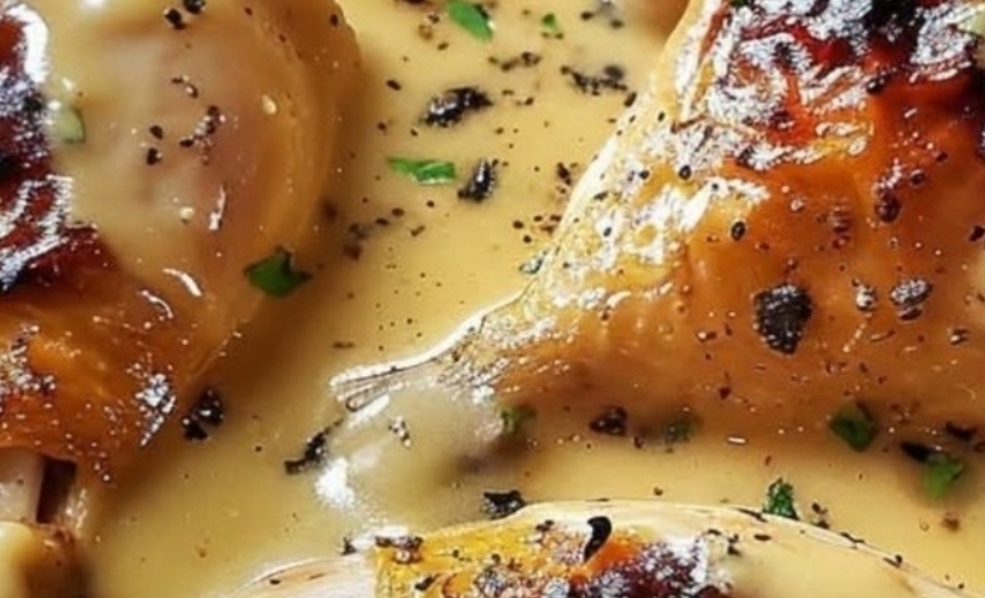 Creamy Mushroom Chicken Thighs is a rich and flavorful dish perfect for weeknight dinners or special occasions. Tender, golden-brown chicken thighs are simmered in a luscious garlic mushroom sauce, creating the ultimate comfort food. This one-pan recipe is easy to prepare and pairs beautifully with mashed potatoes, rice, or noodles. The combination of juicy chicken and creamy, savory sauce is sure to impress your family and guests. Garnish with fresh parsley for a burst of color and added freshness!Ingredients:4 chicken thighs (skin-on, bone-in)1 tbsp olive oil1 tbsp unsalted butter1 onion, thinly sliced2 cloves garlic, minced1 cup mushrooms, sliced (button or cremini)1/2 cup chicken broth1 cup heavy creamSalt and freshly ground black pepper, to tasteFresh parsley, chopped (for garnish)Instructions:1. Prepare the Chicken:Season the chicken thighs generously with salt and freshly ground black pepper.2. Sear the Chicken:Heat olive oil in a large skillet over medium-high heat. Place chicken thighs skin-side down and sear until golden brown, about 5 minutes per side. Remove chicken and set aside.3. Sauté the Veggies:In the same skillet, melt the butter. Add sliced onions and mushrooms, cooking until onions are soft and mushrooms are lightly browned.4. Make the Creamy Sauce:Add minced garlic to the skillet and sauté for 1 minute, until fragrant. Pour in the chicken broth, scraping up any browned bits from the pan. Stir in heavy cream and simmer gently, allowing the sauce to thicken slightly.5. Combine and Cook:Return the seared chicken thighs to the skillet, skin-side up. Reduce heat to low, cover, and let simmer for about 15 minutes, or until the chicken is cooked through and tender.6. Garnish and Serve:Sprinkle with freshly chopped parsley before serving. Serve over creamy mashed potatoes, buttered noodles, or steamed rice for a complete meal.Why You’ll Love This RecipeRich & Creamy Flavor: The sauce is a luxurious blend of cream, garlic, and mushrooms.Juicy Chicken Thighs: Perfectly seared for crispy skin and tender meat.Easy One-Pan Meal: Minimal cleanup makes this recipe a winner for busy nights.CreamyMushroomChicken, ChickenThighRecipe, OnePanMeals, ComfortFood, ChickenDinnerIdeas, EasyWeeknightRecipes, GarlicMushroomChicken, DeliciousDinnerRecipesPrep Time: 10 minutesCook Time: 30 minutesServings: 4Enjoy this creamy mushroom chicken recipe and elevate your dinner table with its irresistible flavors!