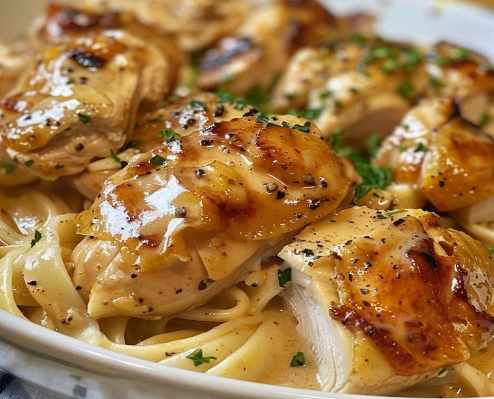 - Serve the angel chicken over cooked pasta or rice, garnished with chopped parsley.