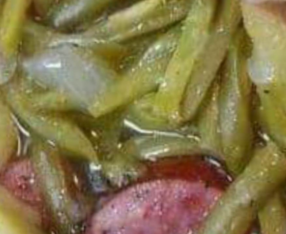 Ingredients:1 pound of boneless ham, cut into bite-sized pieces1 pound of fresh green beans, trimmed1 pound of baby potatoes, halved or quartered1 onion, diced3 cloves of garlic, minced1 teaspoon of dried thyme1 teaspoon of dried rosemary1 teaspoon of paprika1/2 teaspoon of salt1/4 teaspoon of black pepper1 cup of chicken or vegetable brothInstructions:Place the ham, green beans, potatoes, onion, and garlic in the crockpot.In a small bowl, mix together the thyme, rosemary, paprika, salt, and black pepper. Sprinkle the seasoning mix over the ingredients in the crockpot.Pour the broth over everything in the crockpot.Cover the crockpot and cook on low for 6-8 hours, or on high for 3-4 hours, or until the potatoes are tender and the green beans are cooked to your liking.Serve hot andEnjoy!