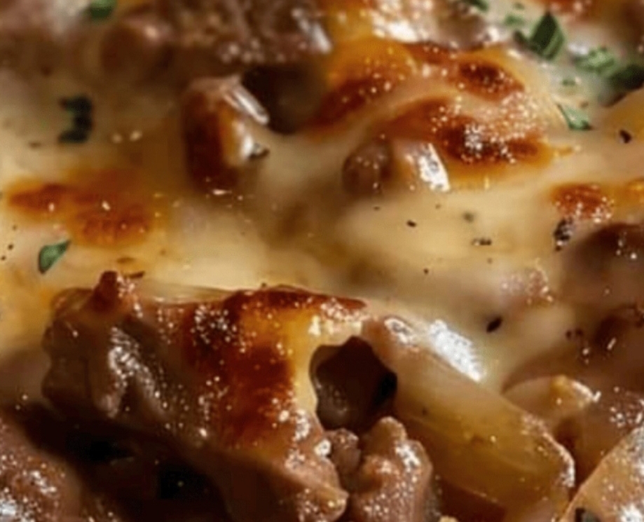 Serve Hot: Enjoy your French Onion Beef and Noodles immediately while warm and flavorful.