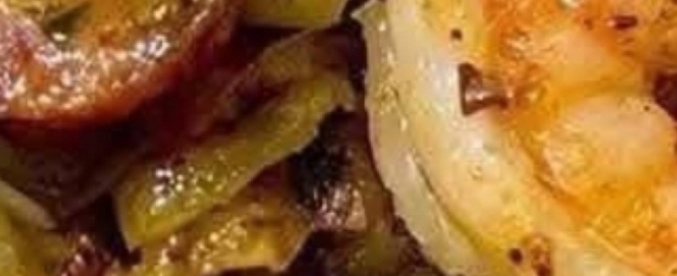 Fried Cabbage with Shrimp Sausage & Bacon