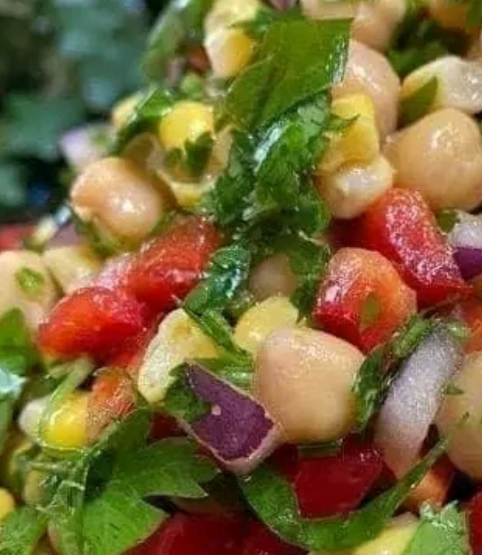 3. Pour dressing over the vegetable and chickpea mixture. Toss gently until all ingredients are evenly coated.