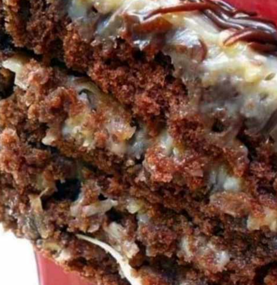 Save the Recipe for German Chocolate Layer Cake with Coconut Pecan FrostingWhen it comes to a homemade chocolate cake recipe, you have to have a German chocolate cake recipe. From the icing to the cake to the toppings, German Chocolate Layer Cake is a must-have recipe.From the first bite to the last, the flavors are amazing. Rich and creamy, sweet and crunchy, this is a recipe you have to try.What is German Chocolate Cake IcingThis is a classic German Chocolate Cake Icing Recipe. German Chocolate layered Cake is known for the very rich icing. This coconut pecan frosting is not a whipped icing like buttercream but is more of a pourable icing. When you make this icing, it will coat the top of the cake and then drizzle over the sides.Ingredients:4 ounces semi-sweet baking chocolate½ cup water2 cups granulated sugar1 cup unsalted butter, softened to room temperature4 large eggs1 ½ teaspoons vanilla1 cup 2 % milk2 ¼ cups all-purpose flour1 teaspoon baking soda1 teaspoon saltCOCONUT-PECAN FROSTING1 cup unsalted butter, melted1 cup granulated sugar1 cup brown sugar, packed2 cups evaporated milk6 egg yolks2 teaspoons vanilla2 ½ cups coconut flakes2 cups pecans, choppedInstructions:CakePreheat oven to 350 degrees.Melt chocolate with the water in a small saucepan over medium-low heat until just melted.In a large mixing bowl, cream together butter and sugar. Pour in the melted chocolate and mix together.Next, mix in the eggs, vanilla and milk until well combined.Add the flour, baking soda and salt to the mixing bowl and stir or mix into the batter until just combined.Spray 3 8-inch cake pans with non-stick cooking spray. For extra coverage, line the bottom of the pans with an 8 inch circle of parchment paper.Pour batter evenly between the three pans and then bake for 35-40 minutes or until a toothipick inserted into the middle of the cake comes out clean.Cool and make frosting.After frosting has cooled, assemble the cake:Put the first layer rounded side down on a cake plate, topping with 1/3 of the frosting.Add the second layer also rounded side down, repeating with another layer of the frosting.Add the 3rd layer, rounded side up. Top with remaining frosting. Do not frost the sides.Refrigerate for 30 minutes to an hour prior to serving to make the cake easier to slice. Save any leftovers covered in the refrigerator.Coconut-Pecan FrostingMelt butter and then add in granulated sugar, brown sugar, evaporated milk and vanilla. Whisk until well combined.Mix in egg yolks.Cook over medium heat, frequently stirring, until mixture thickens and is bubbly. This should be 10-12 minutes.Add in coconut and pecans and stir to combine.Remove from stovetop and cool for at least 30 minutes, stirring now and then.Enjoy!