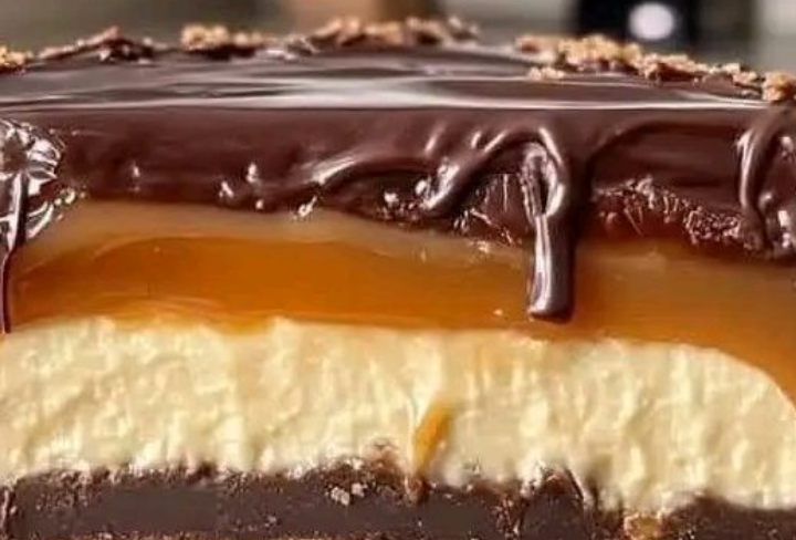 Enjoy your delicious homemade no-bake Twix cheesecake!