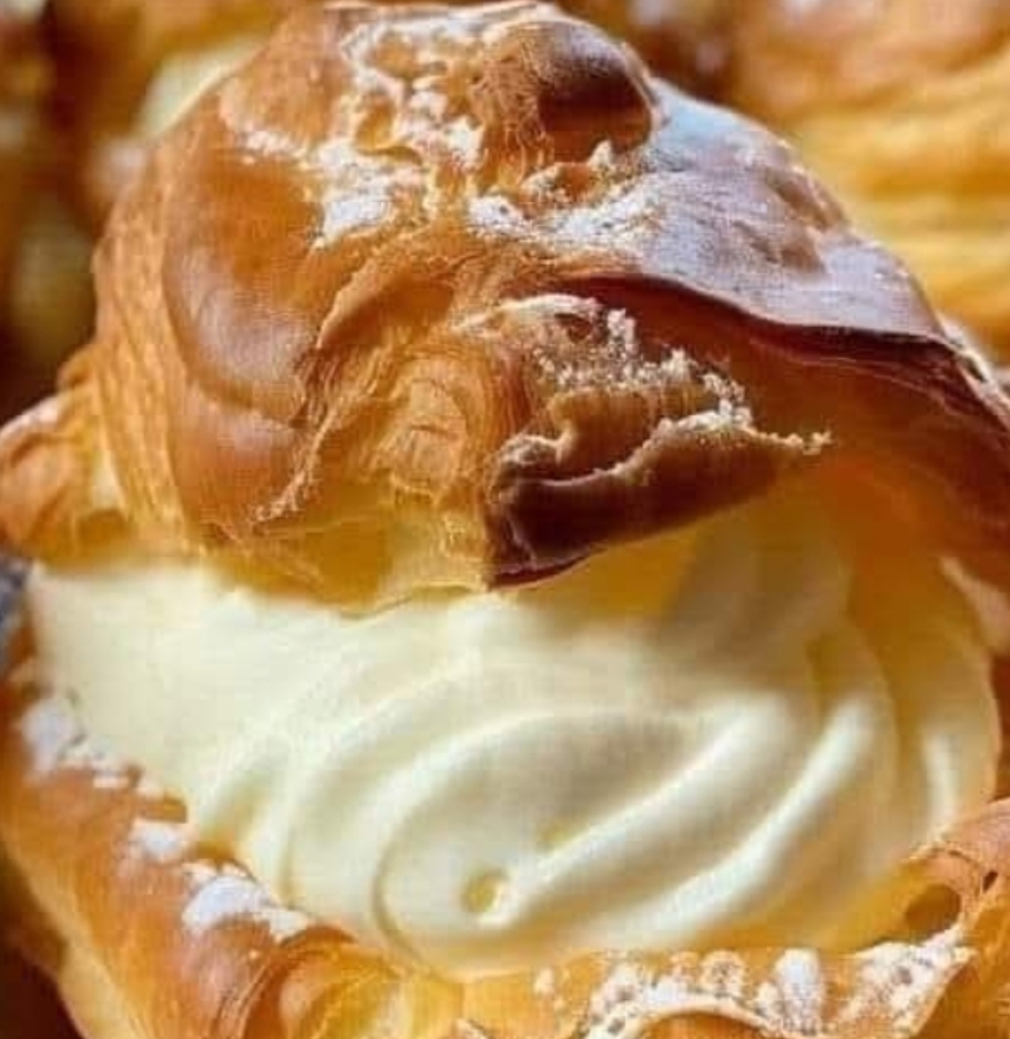 Ingredients:1 stick butter1 cup water1 tsp vanilla1c flour4 eggsMOM’S FAMOUS FILLING:1 PINT HEAVY CREAM1 PACKAGE (3.4 OUNCES) INSTANT VANILLA PUDDING⅓ CUP MILKPreparation:Bring the water, butter and vanilla to a boil. Add flour.Stir constantly until it leaves the side of the pot and forms a ball. Remove and cool.Beat in the 4 eggs, one at a time until smooth.Drop by T. onto parchment lined cookie sheets (You want 8 for nice large ones) and bake at 400 degrees for about 40 minutes.(Pro tip: Can poke with a toothpick once out of the oven, then return them to the oven with it shut OFF and crack the door while they cool. This prevents them from deflating)LET COOL.Slice in half and pipe or scoop in Mom’s filling. Dust with powdered sugar or pour on melted chocolate.FillingBeat all in mixer until thick!Enjoy!