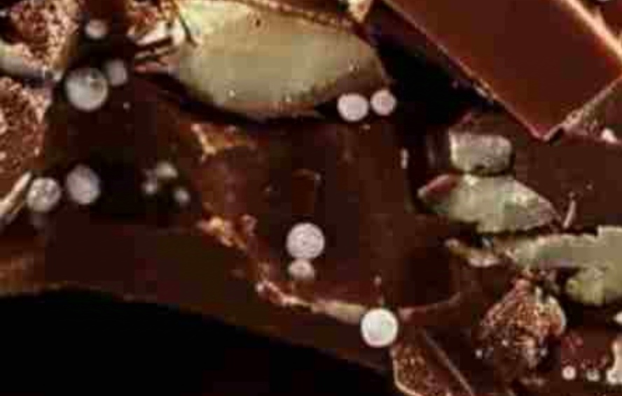 Break the almond bark and chocolate baking bar into smaller pieces and layer them on top of the pecans.