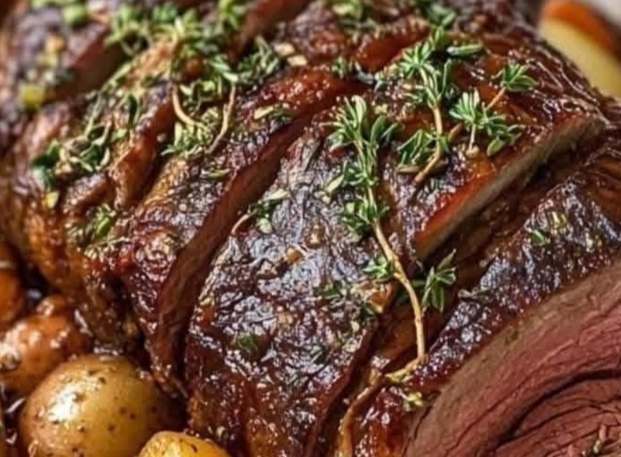 Slice the roast and serve it along with the vegetables. Drizzle with the thickened gravy, if desired.