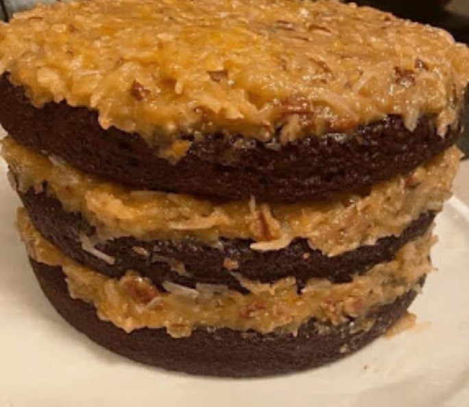 Remove the saucepan from the heat and stir in 1 cup unsalted butter 1 tsp vanilla extract 1 1/3 cups flaked sweetened coconut and 1 cup chopped pecans until well combined.