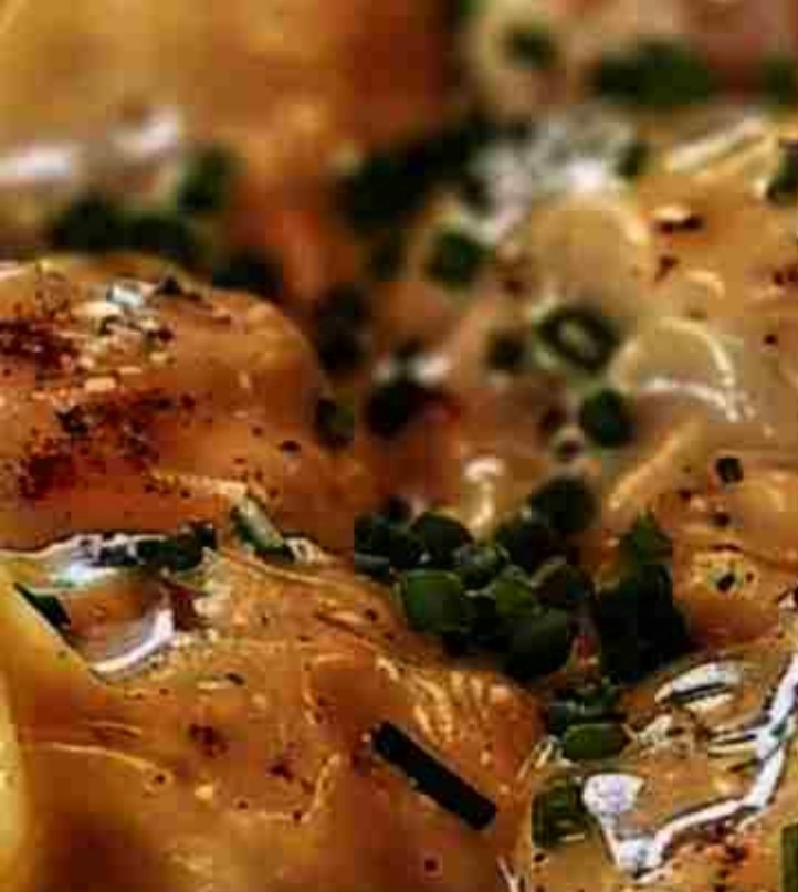 In med bowl whisk together flour and milk. Slowly pour evenly over chicken. Do not stir!