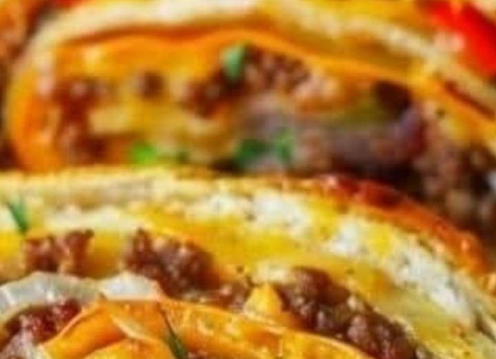 ground beef (one pound), mozzarella (one cup), and cheddar (half a cup).