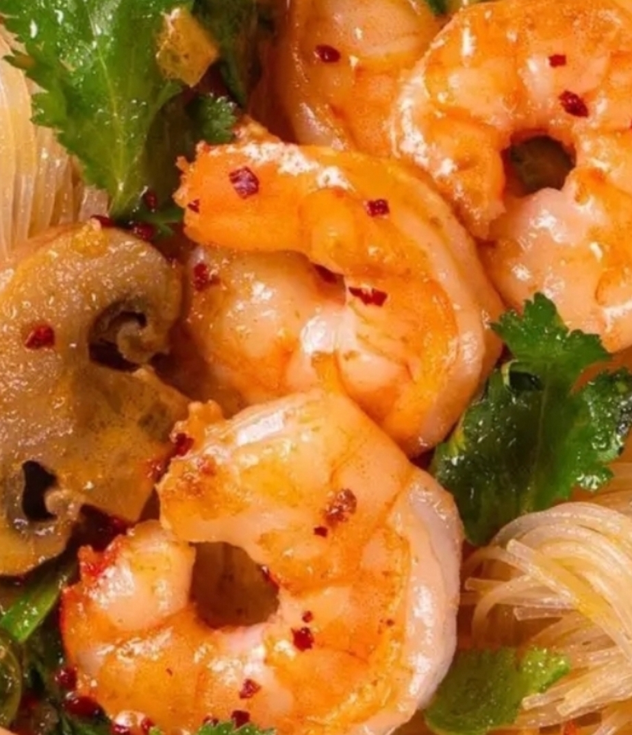 Silky rice noodles swim in a fragrant coconut-lemongrass broth with plump shrimp, mushrooms, bell peppers, and spinach. A harmony of spicy, savory, and tangy flavors!