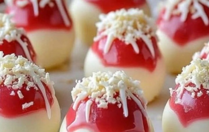 Melt white chocolate in a microwave or double boiler. Dip each cheesecake ball into the melted chocolate, coating it evenly. - Prepare Strawberry Layer:
